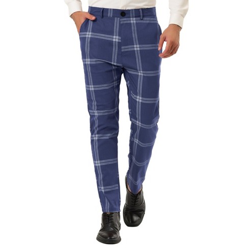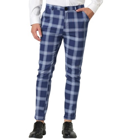 Lars Amadeus Men S Plaid Dress Pants Classic Slim Fit Chino Business Trousers Blue 36 Target